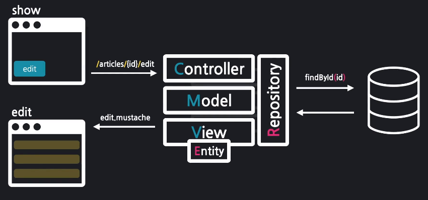 -상세페이지지에 edit 링크를 연결하면 Controller가 해당 요청을 받아서 수정페이지를 보여준다.
