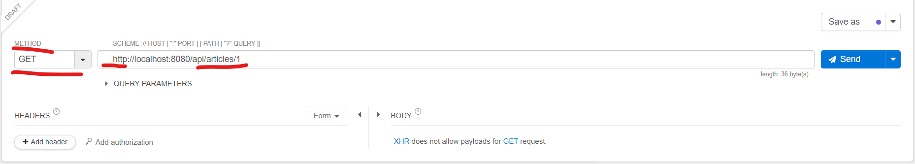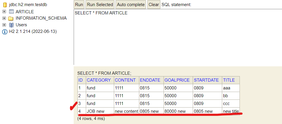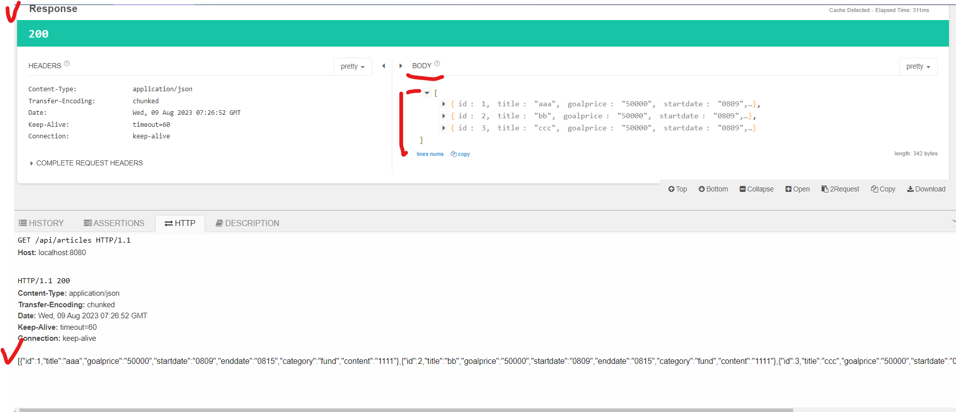 ResponseEntity 에 Article 데이터가 담겨서 JSON으로 반환된다 .