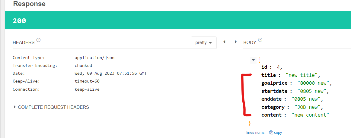 - Response 200 ,BODY에 JSON 데이터가 온 걸 확인할 수 있다.
