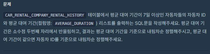 다시 자동차 평균 대여 기간 구하기
