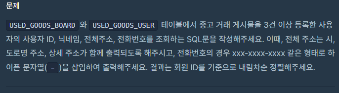 ORDER BY USER_ID DESC ;'프로그래머스 > SQL' 카테고리의 다른 글
